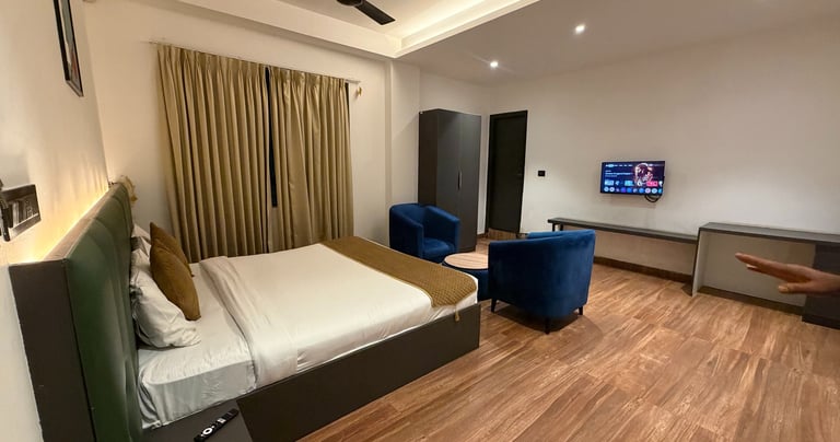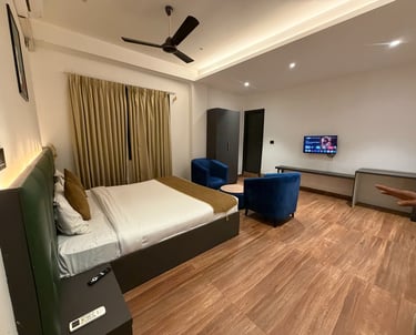 Set in Bengaluru, 8.5 km from Bangalore Palace, Hotel Kingdom Suites (A Unit of Hotel Dhruv Palace) owned by Sejol Khambanaur, Near Elements Mall, Manyata Tech features views of the city. Featuring a terrace, the 3-star hotel has air-conditioned rooms with free WiFi, each with a private bathroom. The accommodation offers room service, a 24-hour front desk and luggage storage for guests. The units come with a flat-screen TV with satellite channels, a kettle, a shower, free toiletries and a desk. All units feature a wardrobe.